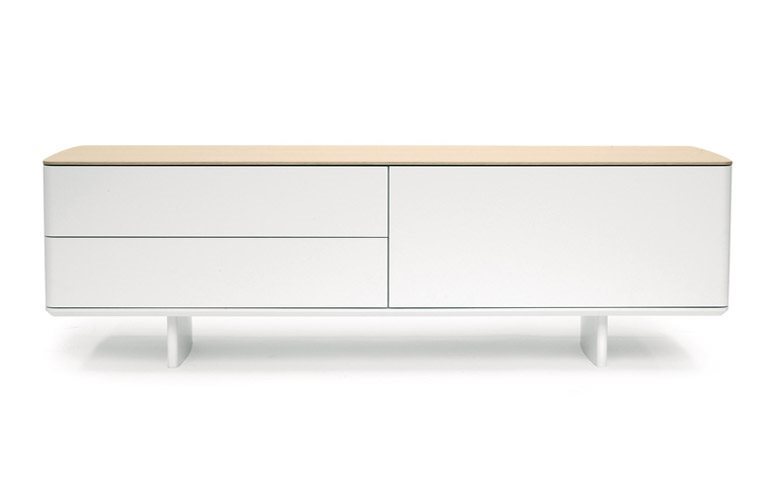 The collection of tables and storage solutions with soft and sleek silhouettes.