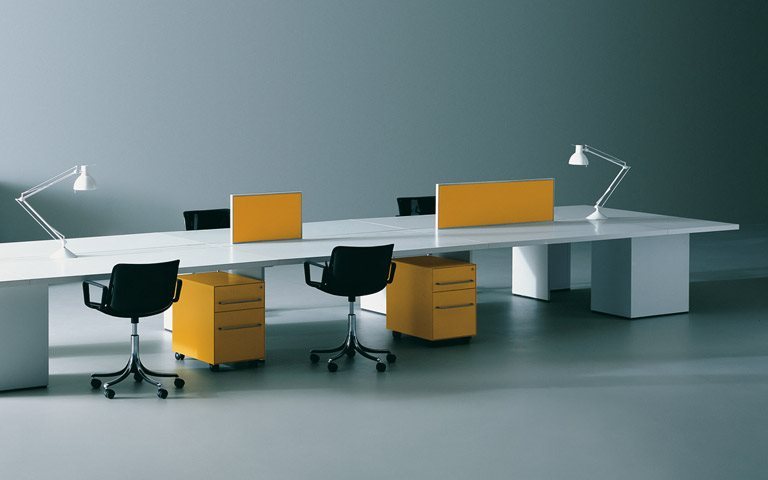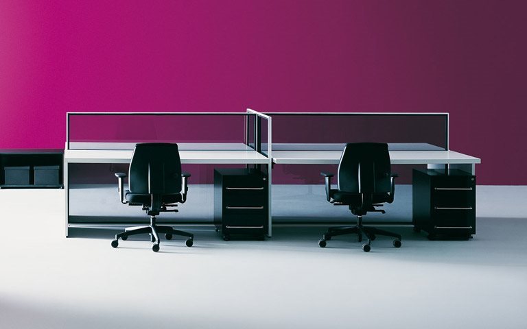 The absolute and elementary form of this system offers a radical, democratic and undifferentiated interpretation of the office, offering maximum creative freedom withopen and shared layouts. A universe of solutions made up of clean cuts, right angles, flat surfaces, devoted to interior architecture solutions where formal precision and neatness are linked to functionality and space optimisation. The formal purity and infinite possibilities make the system perfect for work and meeting spaces but also executive offices and home-office environments.