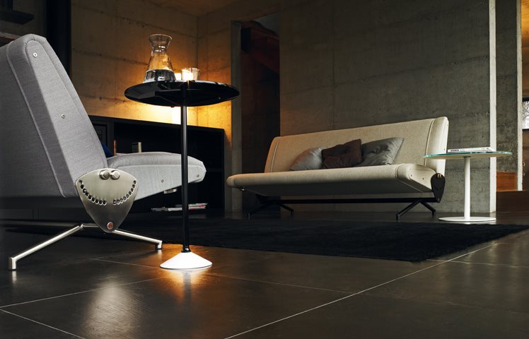Las mesas auxiliares ligeras y minimalistas con diseño gráfico exclusivo. Osvaldo Borsani diseñó las mesas en 1949–50 y solía incluirlas en su proyectos de interiorismo. Oficialmente forman parte de la colección ABV desde 1991.