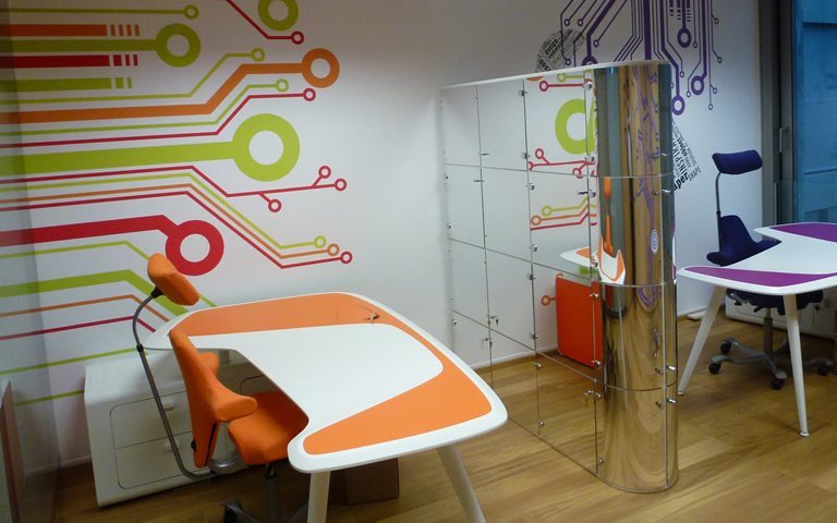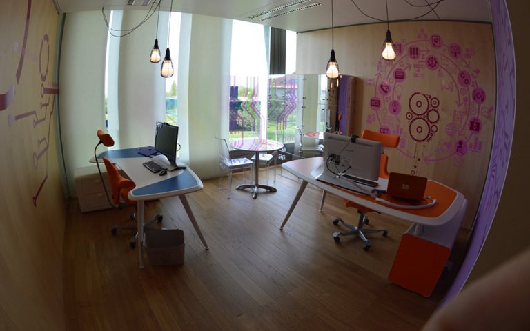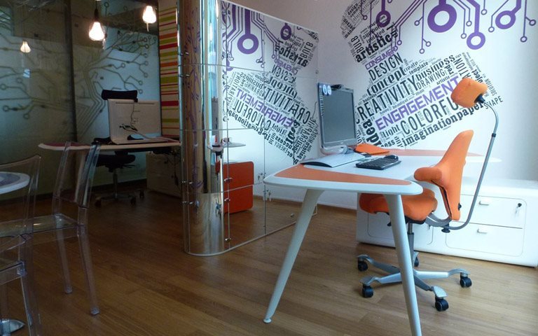 La empresa ha solicitado al estudio turinés Contry Lab, en colaboración con Tecno, que desarrolle estos nuevos espacios concibiéndolos como auténticos lugares de creación. El campus creativo se transforma con 44 puestos Beta personalizados en cuanto a diseño de elementos y colores con el fin de crear ambientes acogedores, accesibles y tecnológicos. Gracias a sus características de modularidad y flexibilidad, el sistema Beta representa el punto de partida en torno al cual se configura la oficina, optimizando los espacios sin renunciar a la comodidad de quien los habita.