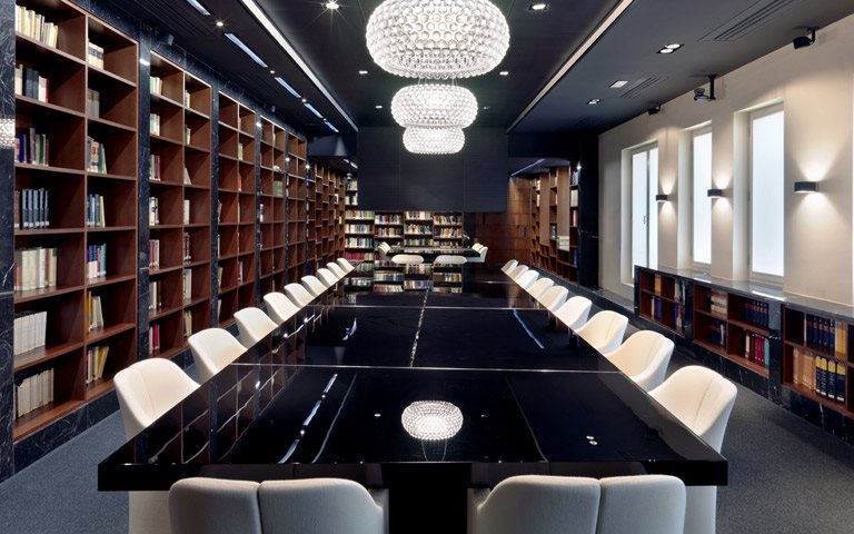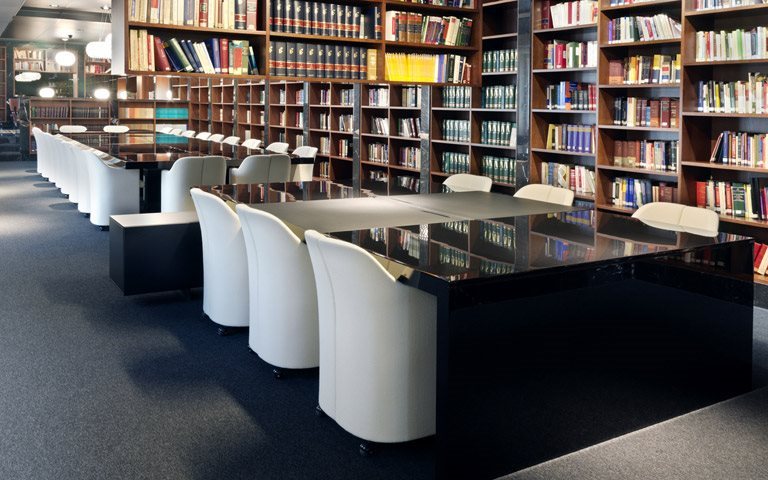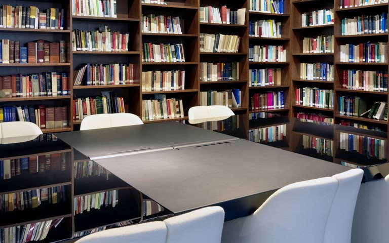 Versión especial de la mesa Asymmetrical diseñada por Piero Lissoni para RHGR, Ramón Hermosilla & Gutiérrez de la Roza, Madrid.