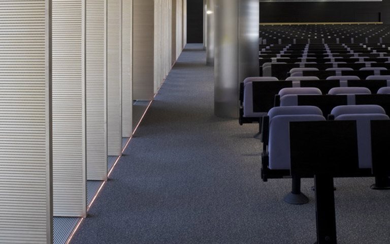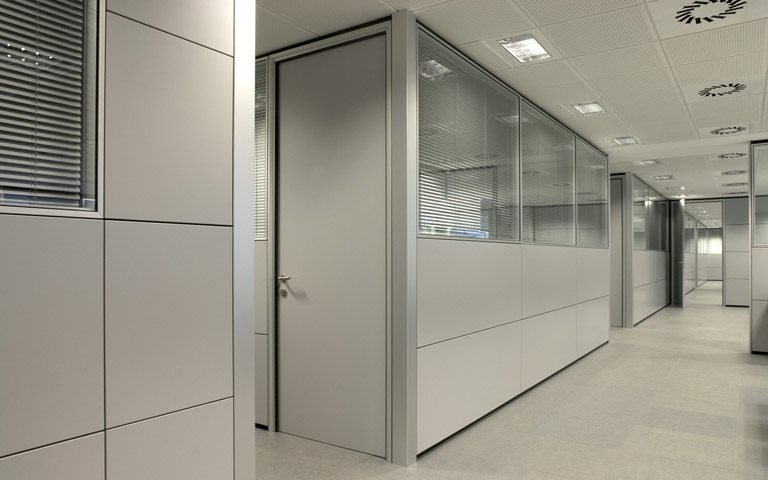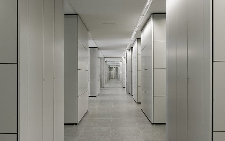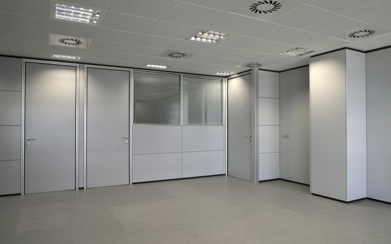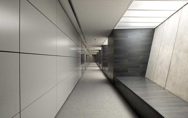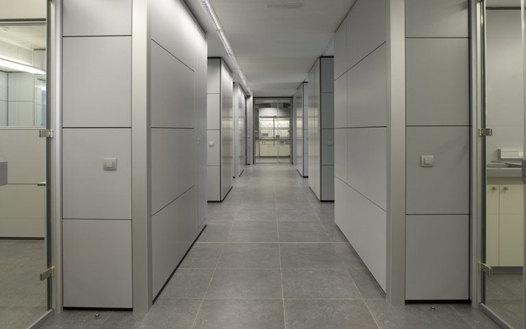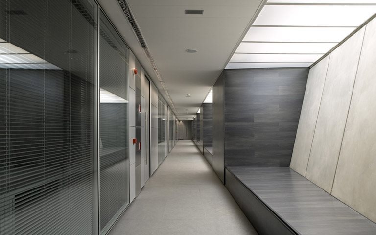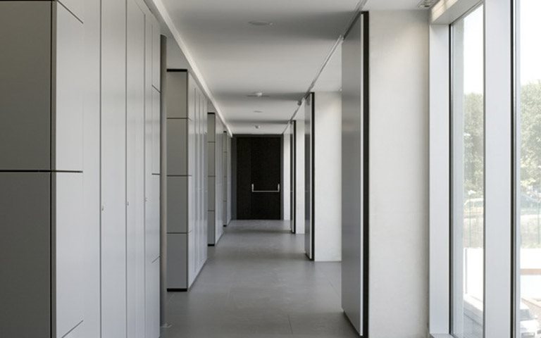Tecno a été chargée d'un imposant travail de fourniture et d'installation, réparti sur trois bâtiments, de 13 000 m² de parois WB coordonnées aux portes et aux armoires, le tout traité avec une finition en mélaminé laqué blanc mat pour en environnement qui communique le sérieux et la rigueur.