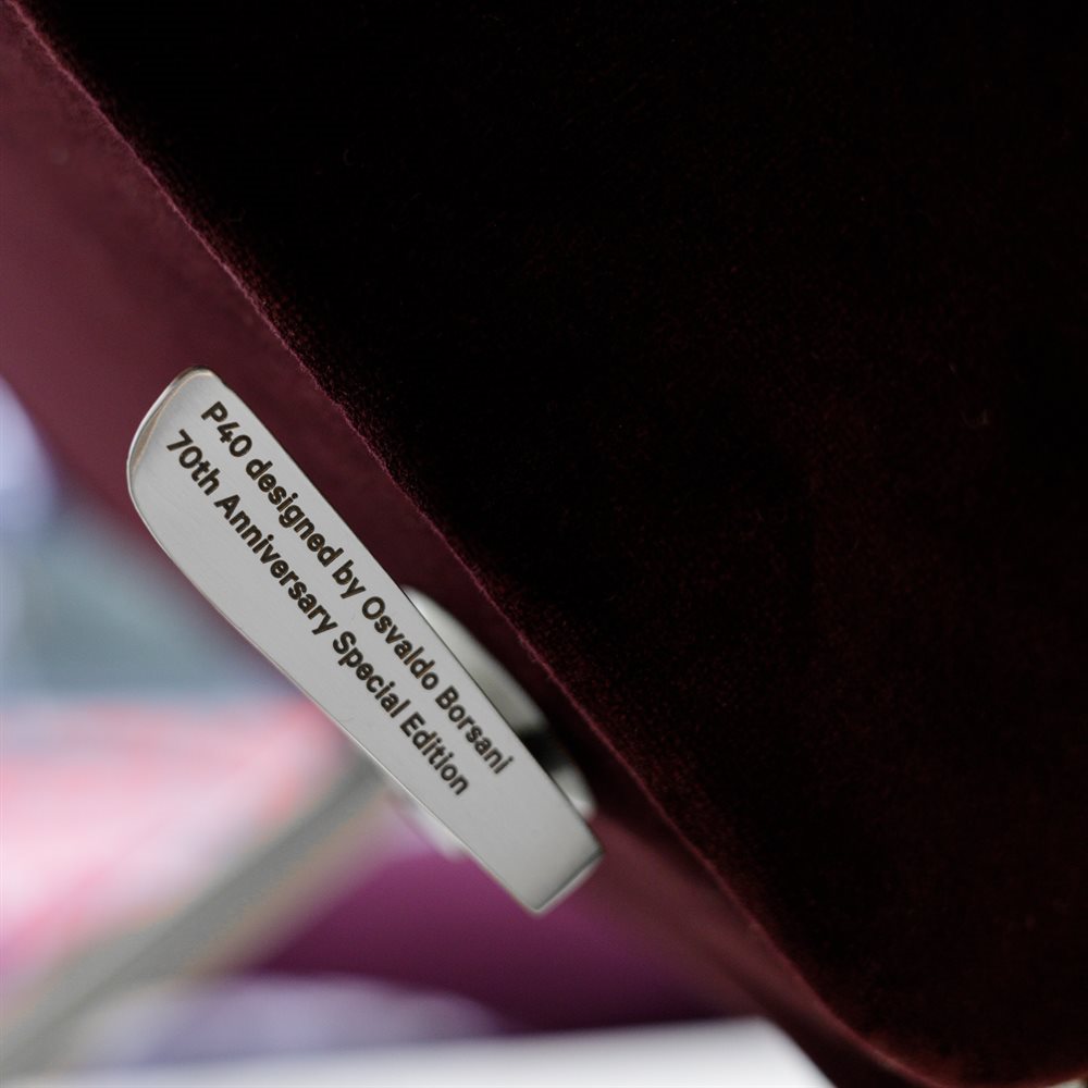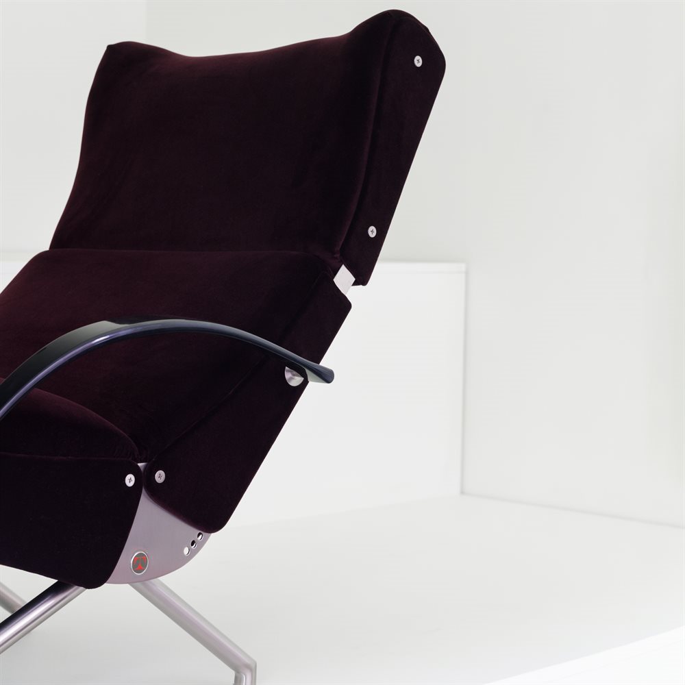 Per l’occasione, la P40 si presenta in un allestimento firmato Davide Fabio Colaci Studio. Forte nell’estetica e accogliente nelle forme, la poltrona cela nelle sue linee essenziali ed eleganti un meccanismo unico nel suo genere, capace di aprirsi in una serie di gradazioni d’inclinazione regolabili fino alla completa chiusura. Versatile, funzionale e dalla forte personalità, è una poltrona veloce ed essenziale, dal comfort irresistibile: le sue curve definiscono un design iconico. La sua natura dinamica la rende ideale sia come elemento di relax domestico che come simbolo d’arredo per spazi direzionali, lounge e aree di accoglienza. In ambito residenziale, si inserisce in zone living o spazi dedicati alla lettura e al riposo, dove la sua versatilità consente di adattarsi ai diversi momenti della giornata. Negli ambienti di rappresentanza, come sale d’attesa, uffici direzionali, hotel o lounge aeroportuali, P40 diventa un segno distintivo offrendo comfort ergonomico e un’immagine di eleganza senza tempo. Originale poltrona relax ad elementi mobili, P40 è composta da un piedistallo di metallo che sostiene sedile e schienale imperniati in modo da consentire tutte le inclinazioni intermedie tra l’apertura e la completa chiusura a scomparsa. Un elemento ribaltabile sotto il sedile accoglie le gambe, completo di poggia-piedi estraibile in metallo, mentre la testiera è estensibile e i braccioli di acciaio e gomma sono ribaltabili per facilitare la seduta. Questa ingegnosità costruttiva ne ha fatto un archetipo del comfort meccanico moderno. La poltrona P40, forse ancor più del divano D70, è divenuta il manifesto ideologico di Tecno, ed è ancora oggi il pezzo più conosciuto e apprezzato del catalogo.
