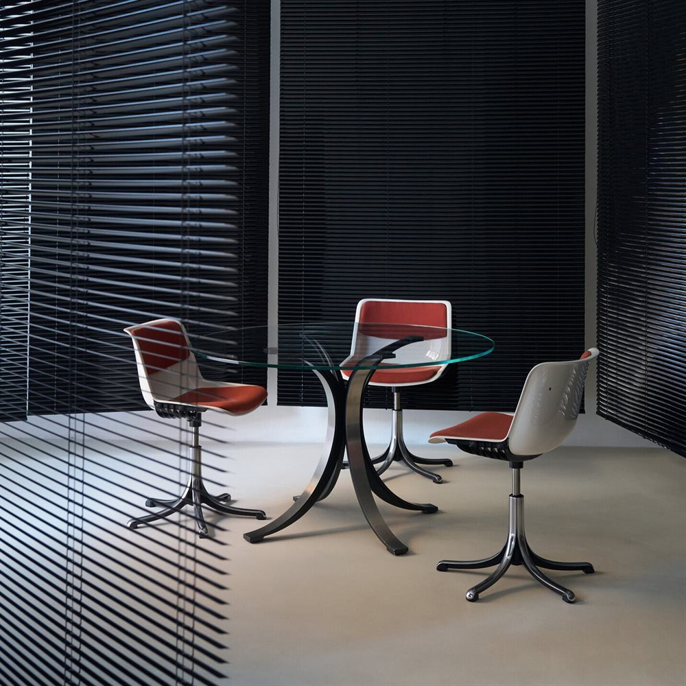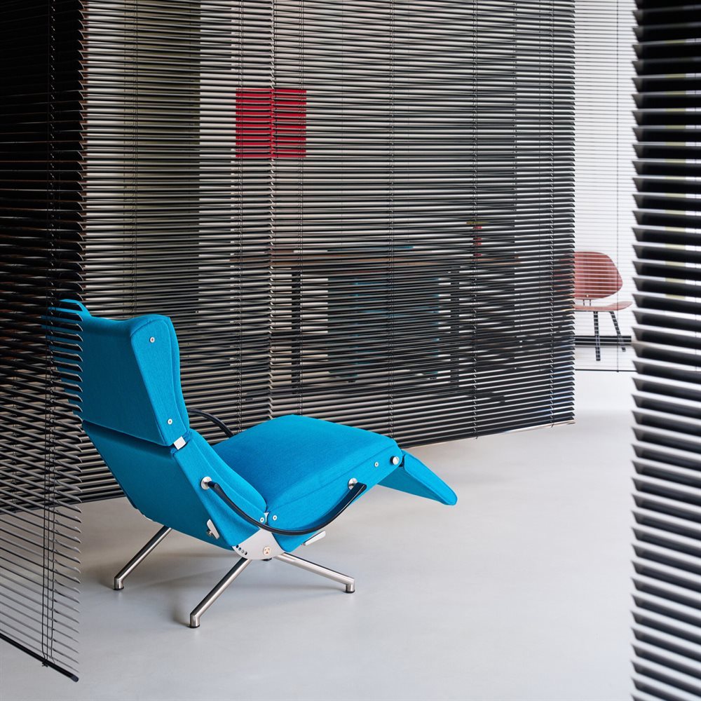 Al centro dell’installazione, P40, la poltrona disegnata da Osvaldo Borsani nel 1956 e icona del design internazionale da settant’anni. Mai uscita di produzione, P40 viene celebrata nel 2026 con una speciale edizione limitata presentata per la prima volta in esclusiva presso Spotti, riaffermando una visione di design fondata su movimento, comfort dinamico ed eleganza funzionale.