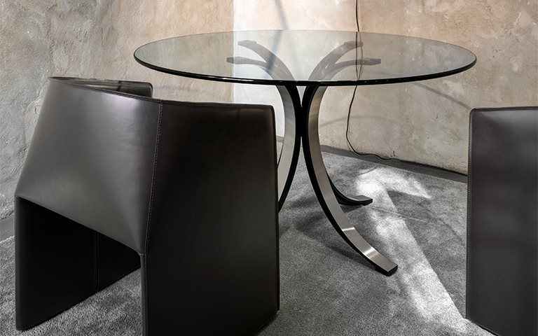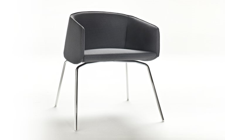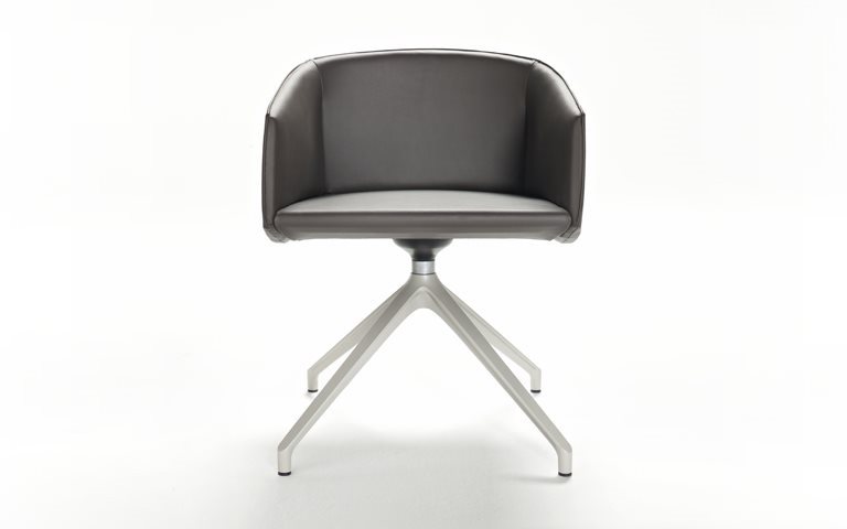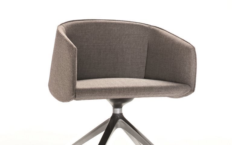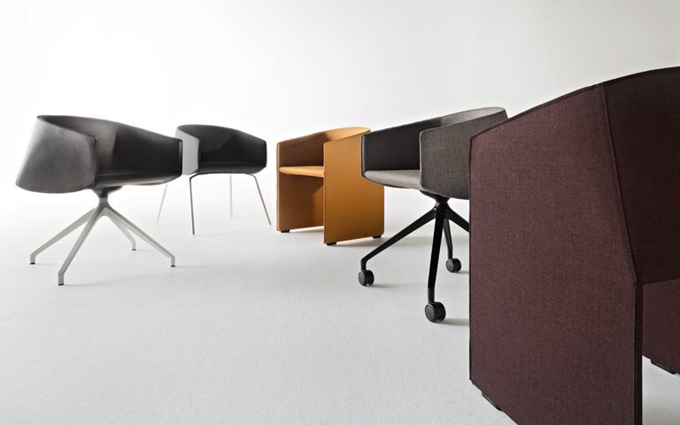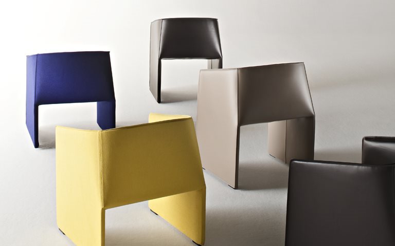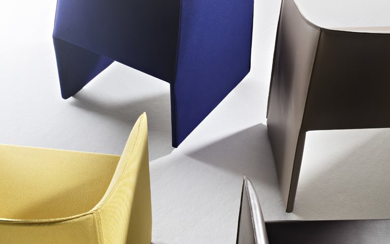 L'idea prende forma da un unico foglio piano e imbottito, tagliato e poi piegato per formare il pozzetto della seduta. La geometria, avvolgente e comoda, è frutto di un’attenta ricerca sull’equilibrio fra linee ortogonali e segni morbidi. Ne scaturisce un pezzo elegante e tecnico, di forte impatto visivo, in linea con la filosofia produttiva e progettuale della Tecno.