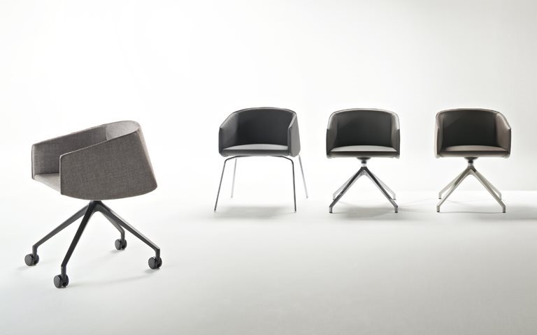 Plau viene proposta in versione alta da tavolo S501 e bassa da relax PS501, integrabile con ruote interne ai fianchi. Versatile e trasversale, è ideale nel paesaggio domestico, attorno al tavolo da pranzo o abbinata ai divani nella zona salotto, e negli spazi di lavoro e contract, nelle aree meeting, di attesa e lounge.