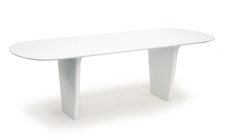 Collezione di tavoli e contenitori dalle linee morbide ed eleganti.