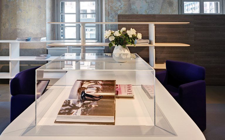 La linea, dalla semplice forma rastremata, morbida ed invitante, crea un’estetica in grado di personalizzare gli ambienti senza implicarne un utilizzo predefinito. Il tavolo rappresenta l’elemento simbolo della serie ed è contraddistinto da una lavorazione del piano a bordo a smusso che, insieme al contenitore e alla libreria, conferisce flessibilità di utilizzo creando un ottimo complemento per ambienti lavorativi ibridi e prestandosi inoltre a spazi privati e domestici, fino a luoghi di accoglienza e hospitality.