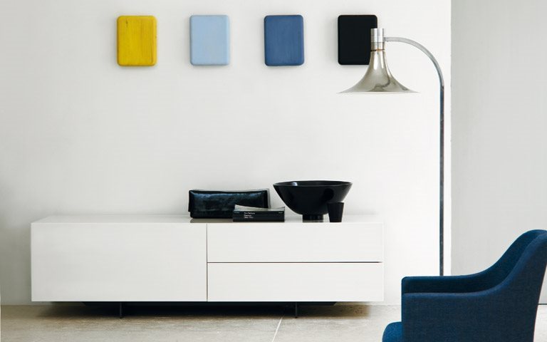기능성이 뛰어난 캐비닛은 Tecno의 다른 컬렉션들과 같은 색상으로 마무리 됩니다 (무광 흰색과 옻칠한 짙은 회색, 유광 흰색과 옻칠한 짙은 회색, 밝은/어두운 나무색과 밝은/중간/어두운 오크색). 캐비닛은 금속부분은 항상 차콜 무연탄 회색입니다.