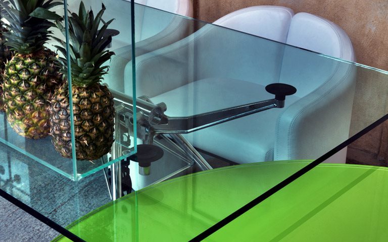 A declined platform, supported by feet modeled like those of the LEM, the lunar module that in 1969 landed on the Moon. In the table versions, it is possible to adjust the height of the top in two positions, 72 cm and 65 cm, simply by assembling the feet with or without spacer.From the archives