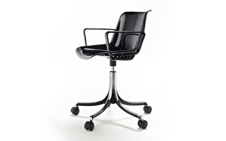 The characteristic “spider” frame which connects the seat to the semi-circular base is a unique and patented kind of support. “Support for the Seat of a Chair” patent no. 3,827,750 issued on 6 August 1974.