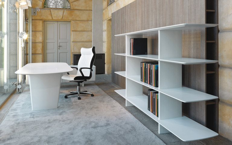모든 버전은 안전장치가 설치되어 있습니다. 캐비닛 상단은 무광 흰색, 유광 흰색 및 라이트 오크의 이 세 가지 다른 마감 종류로 제작될 수 있습니다. 본체와 프레임은 표준 무광 흰색으로 제작됩니다. Shift 책장 (240 x 45 cm, 높이 99/139 cm)는 날씬하고 둥근 형태의 테이블 모양에 반영하여 3~ 4 개의 선반으로 구성된 두 가지 버전으로 제공됩니다. 책장은 흰색으로 무광 알루미늄 마감으로 되어있습니다.