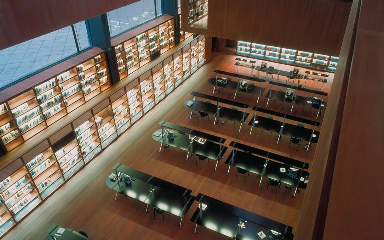Tecno were called upon to furnish the reading room in the library and the executive offices of the Centro de Arte Reina Sofía, installing more than 100 stations with tables from the Nomos system in black floorpan with chrome bases.