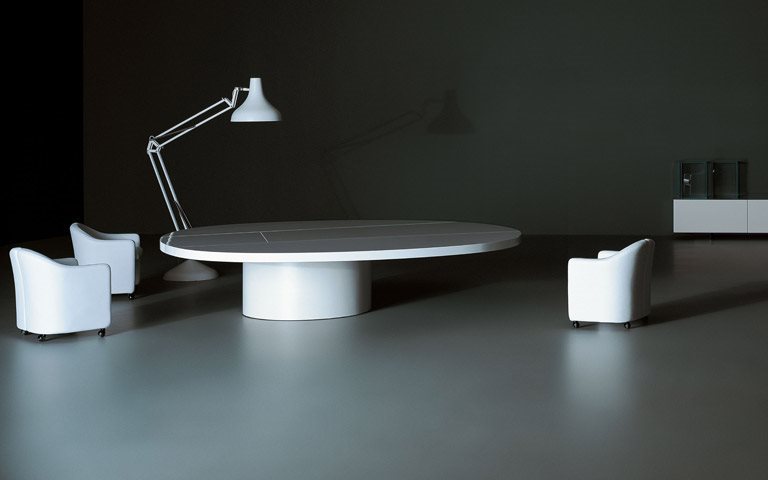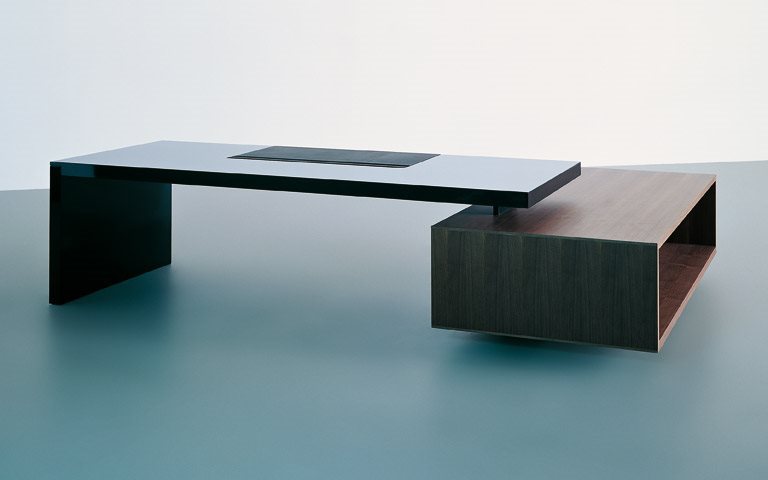 These extra-large workstations are equipped with hidden cable management and service compartments, for technical performance and functionality concealed in pure, minimal forms, held in a precise equilibrium.