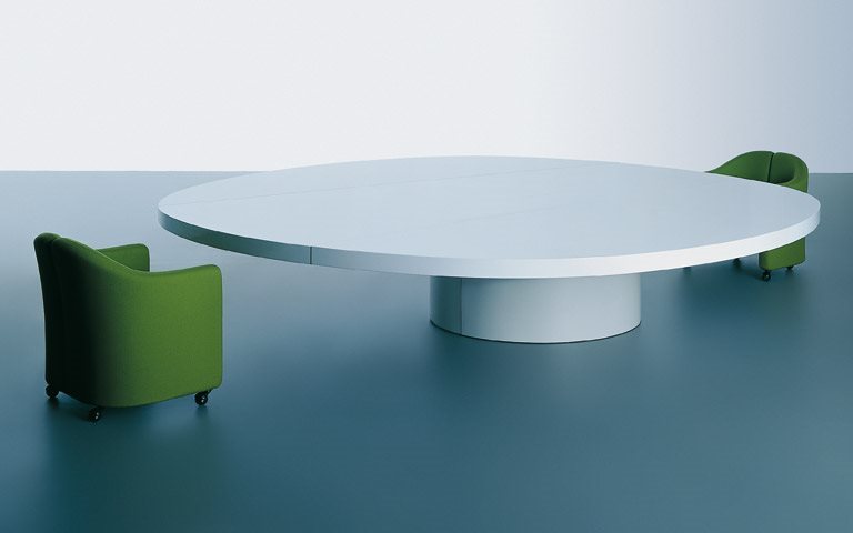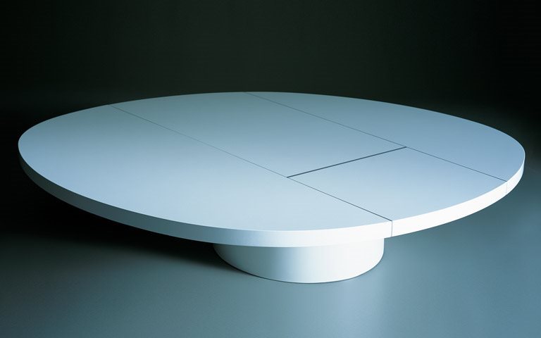 The sophisticated formal solutions, ranging from the refined overhanging table tops to the various types and sizes of storage units, host secret compartments where everything is within arm’s reach.