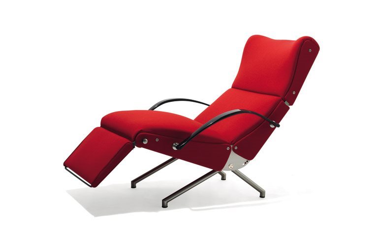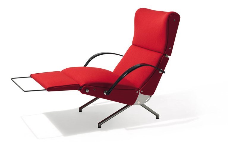 博尔萨尼的P40躺椅是一款由活动元素制成的休闲椅。金属基座支撑座椅和靠背,后二者可以枢转,达到所有可能的角度。