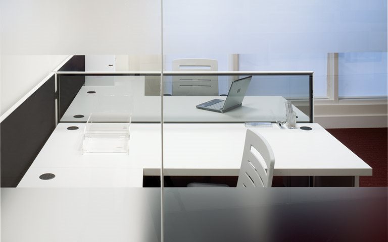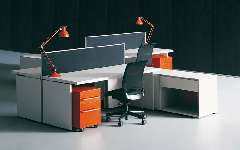 三聚氰胺饰面台面现在提供白色、浅灰色、深灰色、浅色橡木和深色橡木等选择。地柜和分区面板框架的漆面提供白色、浅灰色或深灰色等选择,分区面板本身则提供织物、三聚氰胺饰面或烟色玻璃等选择。