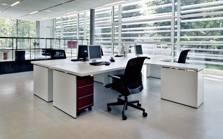该系统可以轻松地形成从简单的单个工作站到扩展的共享工作站的布局,这些工作站成行排列或围绕分区面板排列。